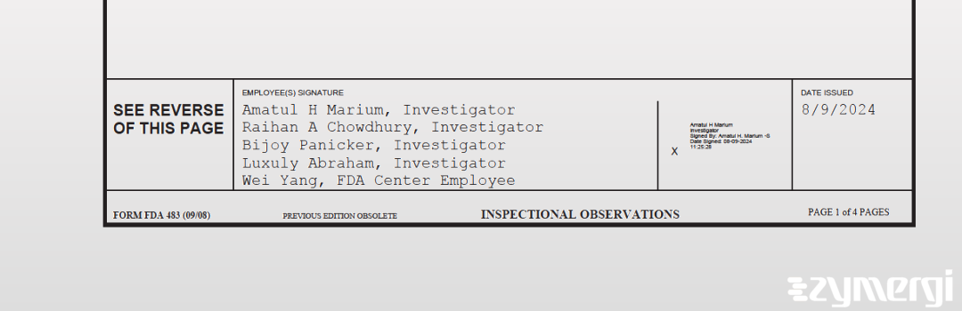 483 Document: Ascent Pharmaceuticals Inc, Aug 9, 2024