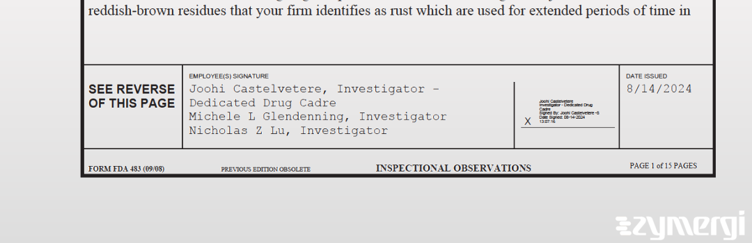 483 Document: Dental Technologies Inc., Aug 14, 2024