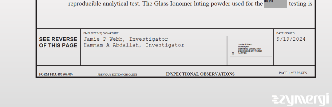 On Sep 19, 2024, the FDA inspected Dentonics, Inc's Monroe site. Explore the inspectional observations.