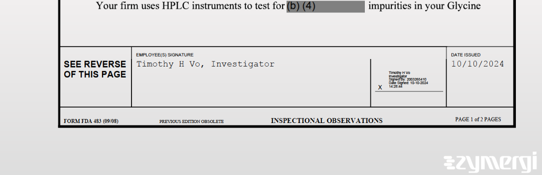 483 Document: GEO Specialty Chemicals, Inc., Oct 10, 2024