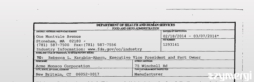 On Mar 07, 2014, the FDA inspected Acme Monaco Corporation's New Britain site. Explore the inspectional observations.
