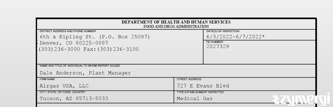 On Jun 07, 2022, the FDA inspected AIRGAS USA, LLC.'s Tucson site. Explore the inspectional observations.
