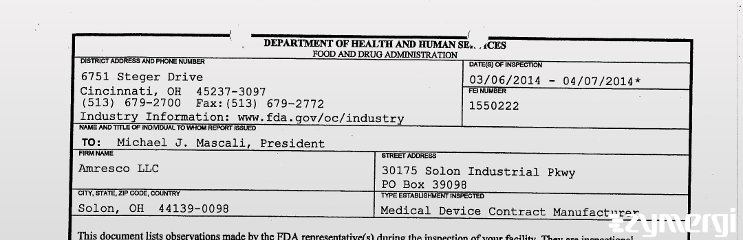 On Apr 07, 2014, the FDA inspected Amresco LLC's Solon site. Explore the inspectional observations.