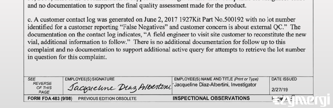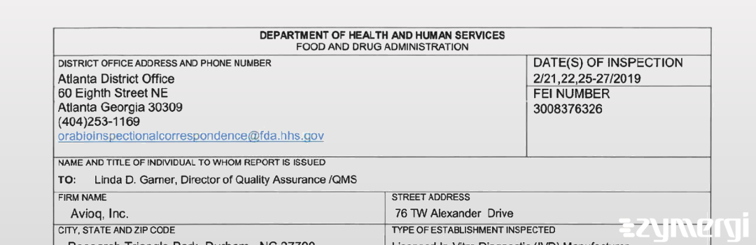 On Feb 27, 2019, the FDA inspected Avioq, Inc.'s Durham site. Explore the inspectional observations.