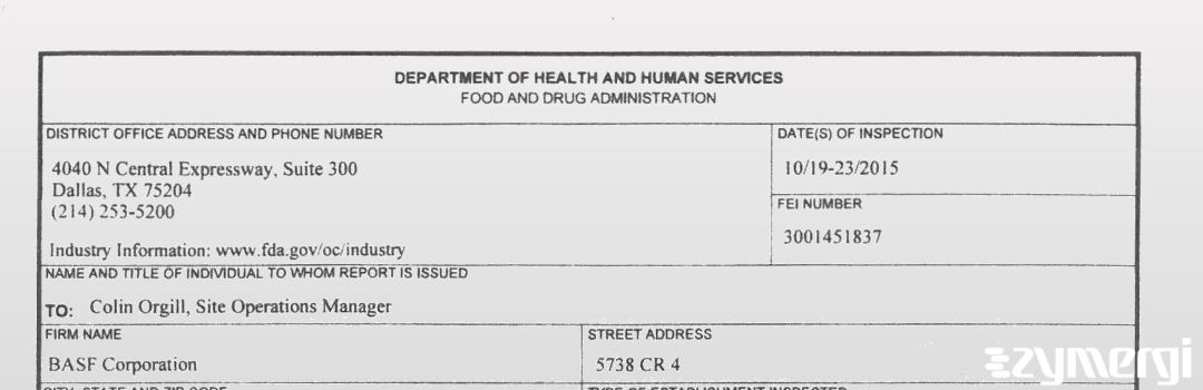 On Oct 23, 2015, the FDA inspected BASF Corporation's Bishop site. Explore the inspectional observations.