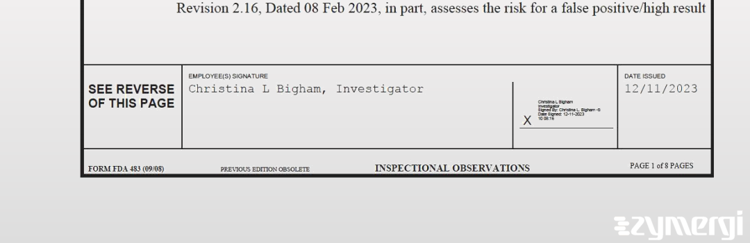 483 Document: Beckman Coulter, Inc., Dec 11, 2023