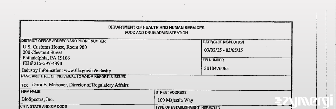 483 Document: Biospectra, Inc., Mar 5, 2015