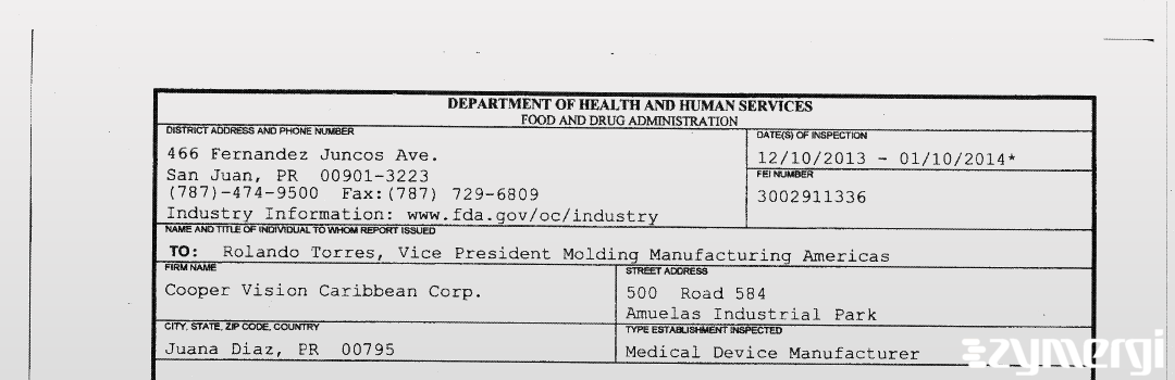 483 Document: Cooper Vision Caribbean Corp., Jan 10, 2014