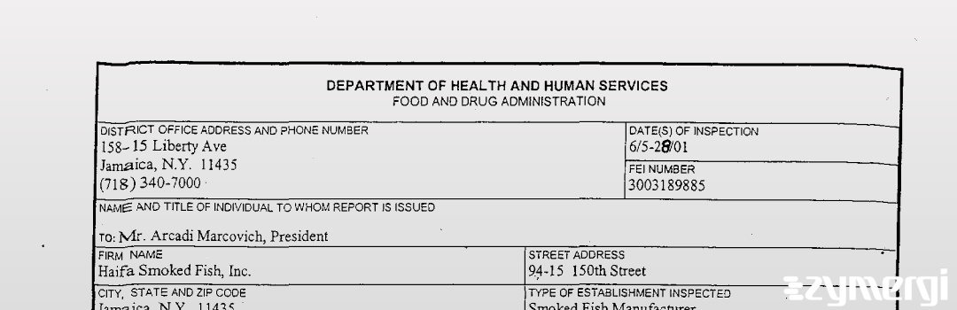 On Jun 28, 2001, the FDA inspected D & M Smoked Fish, Inc. dba Haifa Smoked Fish's Jamaica site. Explore the inspectional observations.