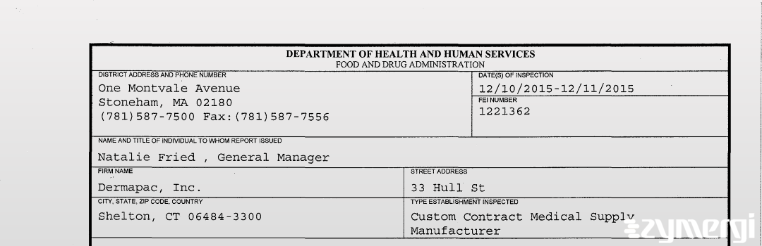 483 Document: Dermapac, Inc., Dec 11, 2015