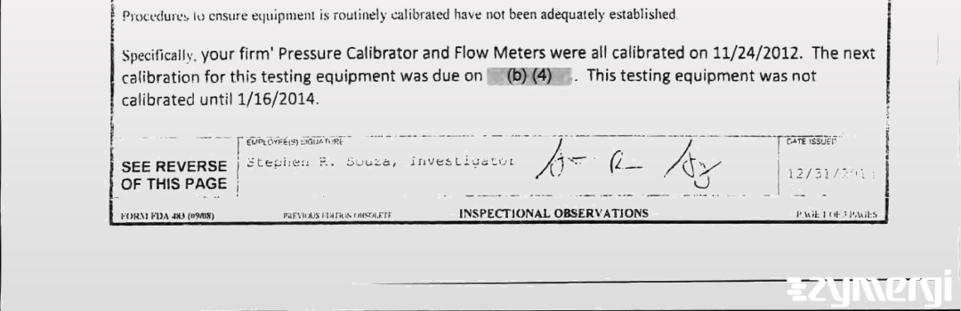 On Dec 31, 2014, the FDA inspected Anesthesia Equipment Supply, Inc.'s Black Diamond site. Explore the inspectional observations.