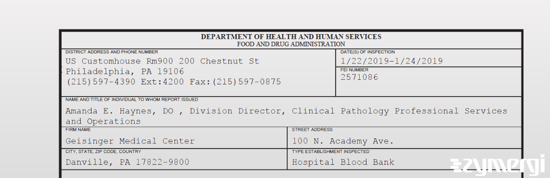 On Jan 24, 2019, the FDA inspected Geisinger Medical Center's Danville site. Explore the inspectional observations.