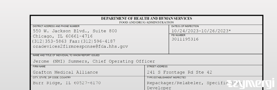On Oct 26, 2023, the FDA inspected Grafton Medical Alliance's Burr Ridge site. Explore the inspectional observations.