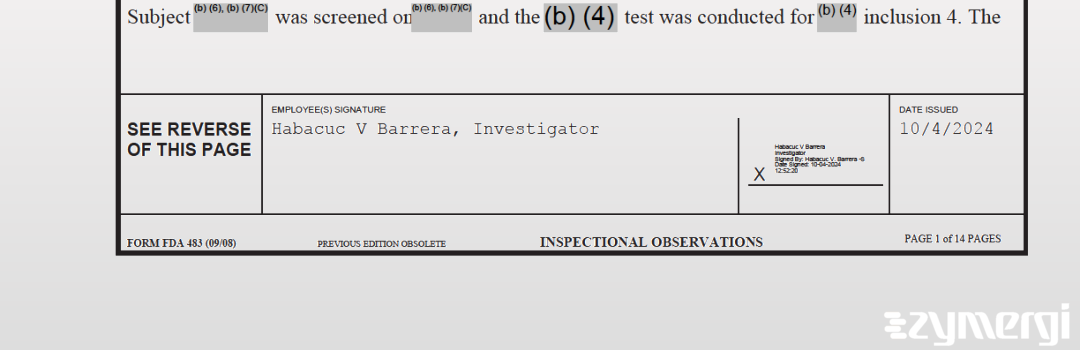 On Oct 04, 2024, the FDA inspected Haider Afzal, M.D.'s Baytown site. Explore the inspectional observations.