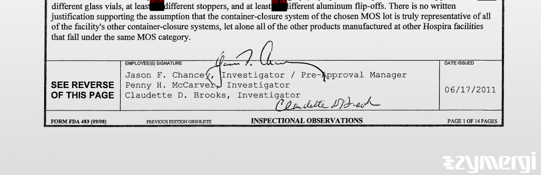 On Jun 17, 2011, the FDA inspected Hospira, Inc.'s Rocky Mount site. Explore the inspectional observations.