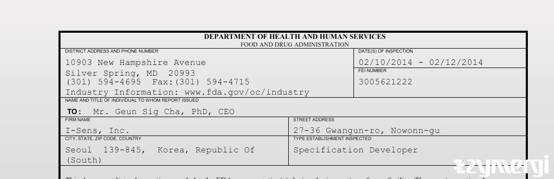 On Feb 12, 2014, the FDA inspected I-Sens, Inc.'s Seoul site. Explore the inspectional observations.