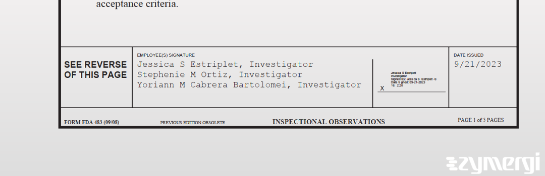 On Sep 21, 2023, the FDA inspected International Trading Pharm Lab Inc's Paterson site. Explore the inspectional observations.