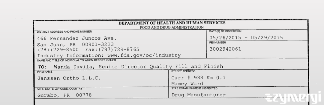 On May 29, 2015, the FDA inspected Janssen Ortho, Llc's Gurabo site. Explore the inspectional observations.