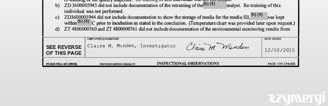 On Dec 10, 2015, the FDA inspected Jubilant HollisterStier General Partnership's Kirkland site. Explore the inspectional observations.
