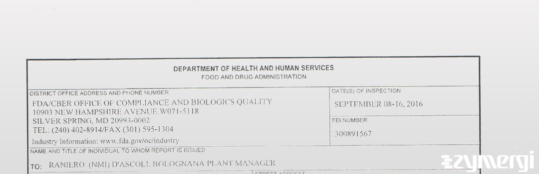 On Sep 16, 2016, the FDA inspected Kedrion S.p.A.'s Gallicano site. Explore the inspectional observations.