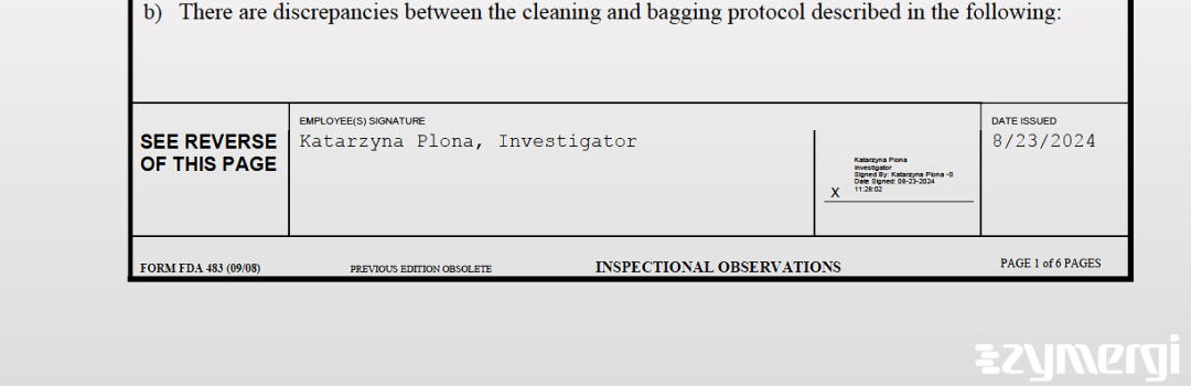 On Aug 23, 2024, the FDA inspected Kelyniam Global, Inc.'s Collinsville site. Explore the inspectional observations.