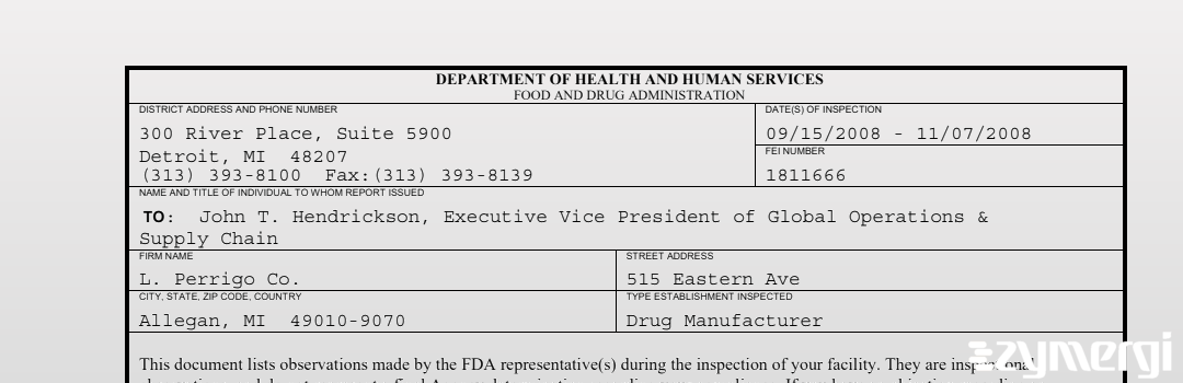 On Nov 07, 2008, the FDA inspected L. Perrigo Co.'s Allegan site. Explore the inspectional observations.