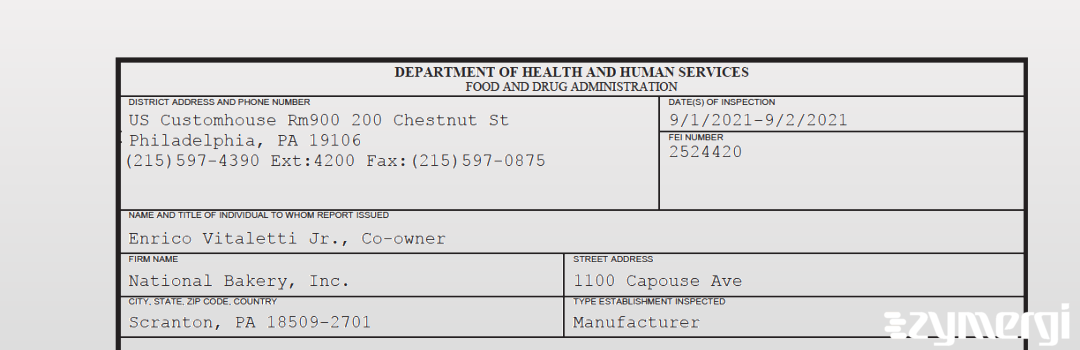 483 Document: National Bakery, Inc., Sep 2, 2021