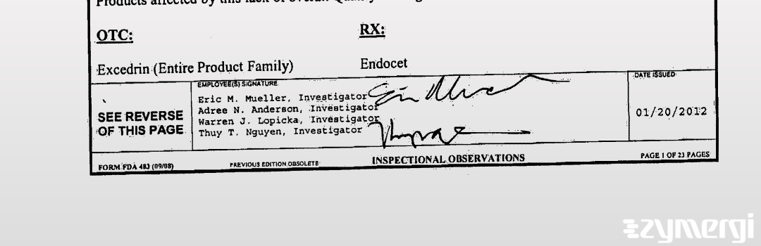 On Jan 20, 2012, the FDA inspected Novartis Consumer Health's Lincoln site. Explore the inspectional observations.