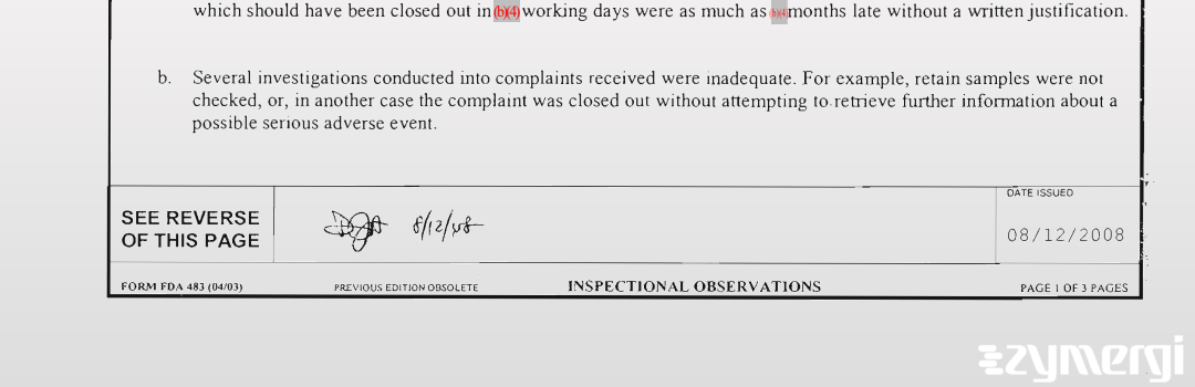 483 Document: Professional Disposables International, Inc., Aug 12, 2008