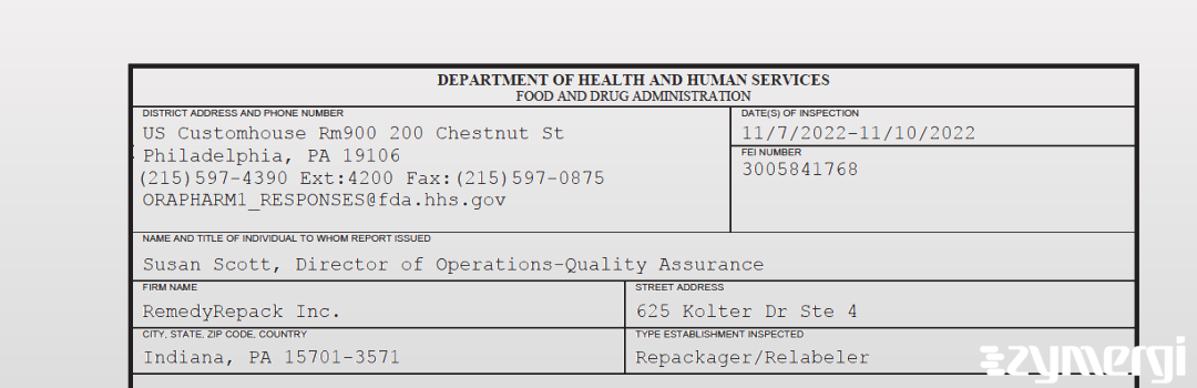On Nov 10, 2022, the FDA inspected RemedyRepack Inc.'s Indiana site. Explore the inspectional observations.