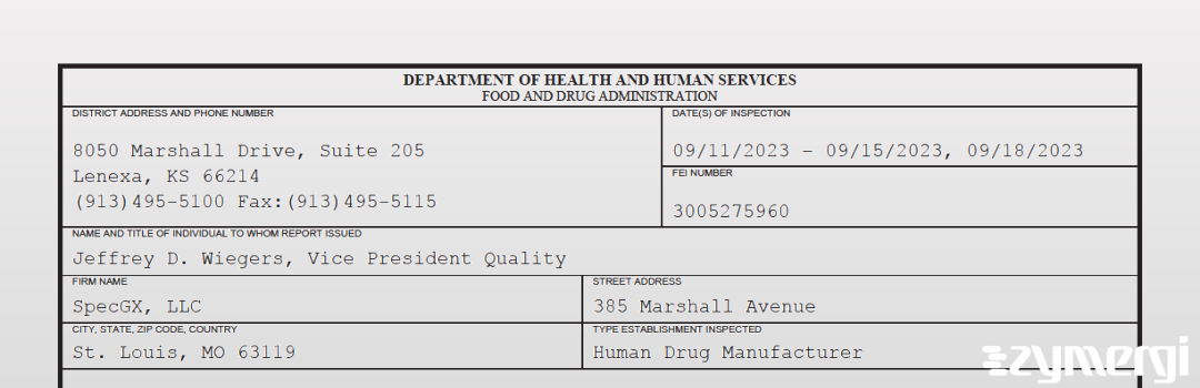 On Sep 18, 2023, the FDA inspected SpecGx LLC's Webster Groves site. Explore the inspectional observations.