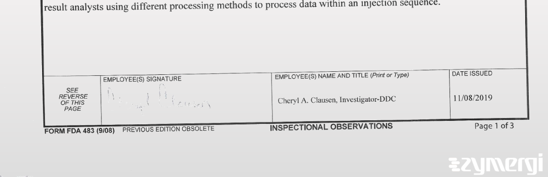 483 Document: Sun Pharmaceutical Industries, LTD., Nov 8, 2019