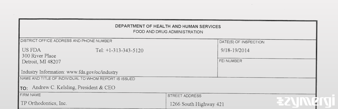 On Sep 19, 2014, the FDA inspected TP Orthodontics, Inc.'s LaPorte site. Explore the inspectional observations.