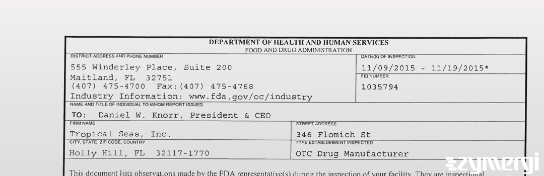 483 Document: Tropical Seas, Inc., Nov 19, 2015
