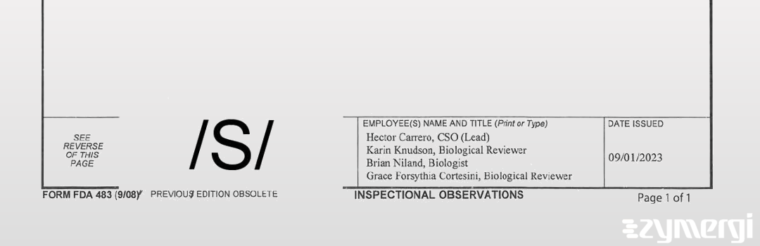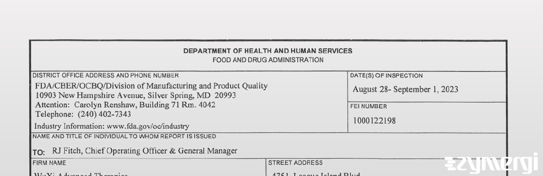 483 Document: WuXi Advanced Therapies, Sep 1, 2023