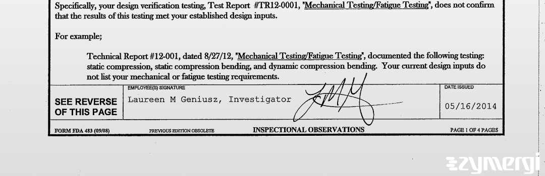 483 Document: Zuga Medical Inc., May 16, 2014