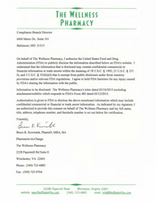 483 Response The Wellness Pharmacy, Winchester | March 2015